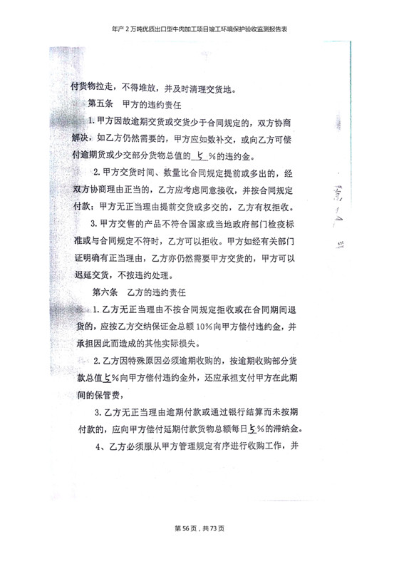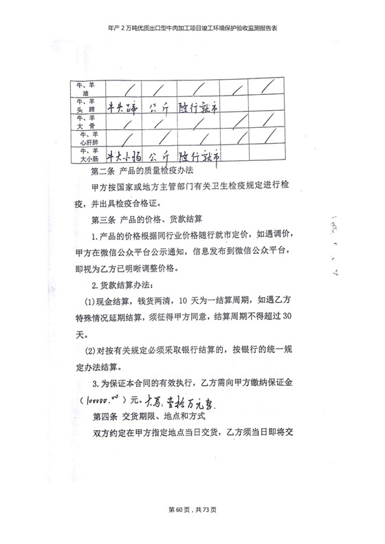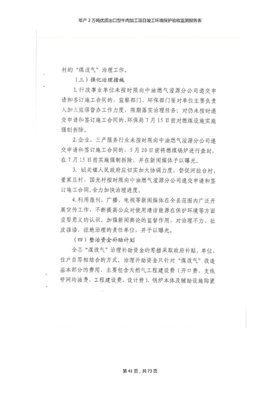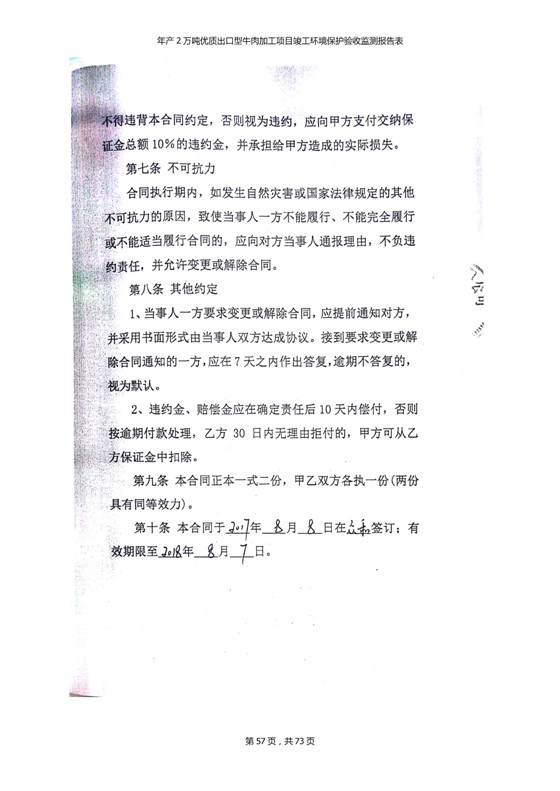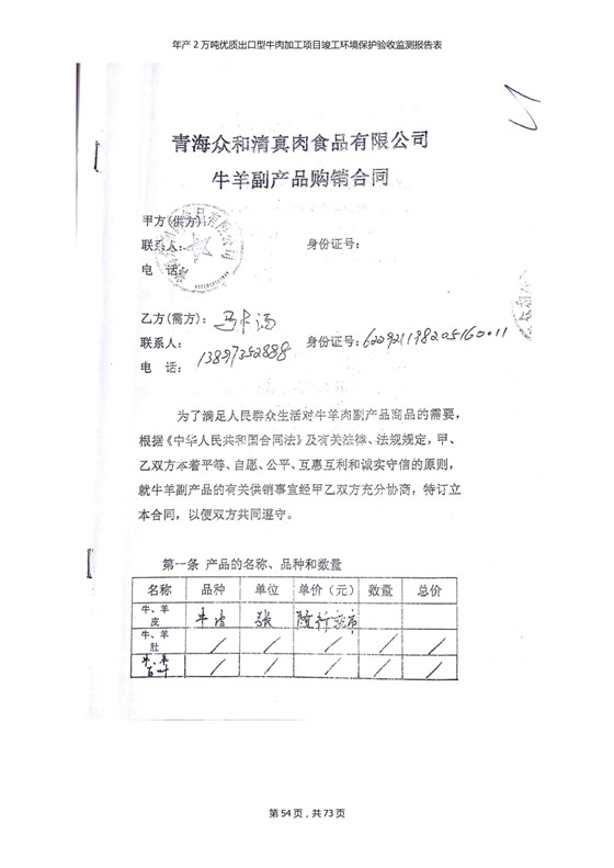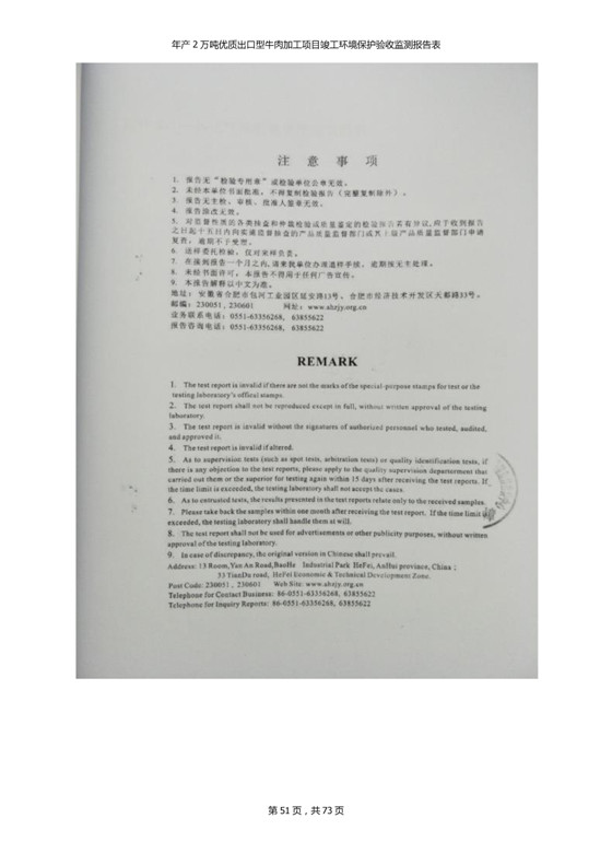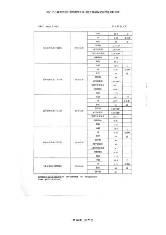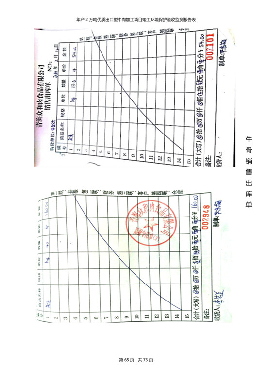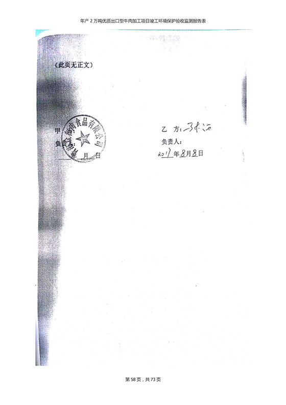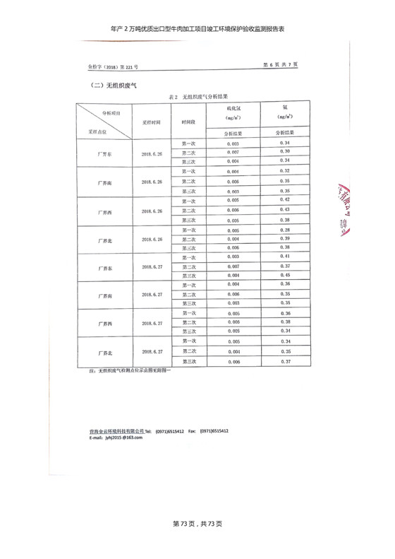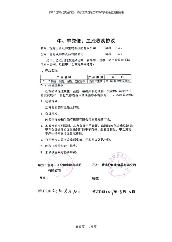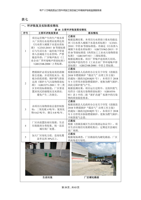 根據(jù)中華人民共和國(guó)國(guó)務(wù)院令第253號(hào)《建設(shè)項(xiàng)目環(huán)境保護(hù)管理?xiàng)l例》(中華人民共和國(guó)國(guó)務(wù)院令第682號(hào)《國(guó)務(wù)院關(guān)于修改〈建設(shè)項(xiàng)目環(huán)境保護(hù)管理?xiàng)l例〉的決定》和《建設(shè)項(xiàng)目竣工環(huán)境保護(hù)驗(yàn)收暫行辦法》,嚴(yán)格依照有關(guān)法律法規(guī),建設(shè)項(xiàng)目環(huán)境保護(hù)設(shè)施驗(yàn)收技術(shù)規(guī)范,本項(xiàng)目環(huán)評(píng)報(bào)告表和環(huán)保審批部門審批意見以及企業(yè)自行驗(yàn)收相關(guān)要求等對(duì)本項(xiàng)目進(jìn)行驗(yàn)收,本項(xiàng)目符合環(huán)保驗(yàn)收條件,可以通過(guò)環(huán)保驗(yàn)收。 青海三江一力農(nóng)業(yè)有限公司組織召開年產(chǎn)2萬(wàn)噸優(yōu)質(zhì)出口型牛肉加工項(xiàng)目(一期工程)驗(yàn)收組意見.