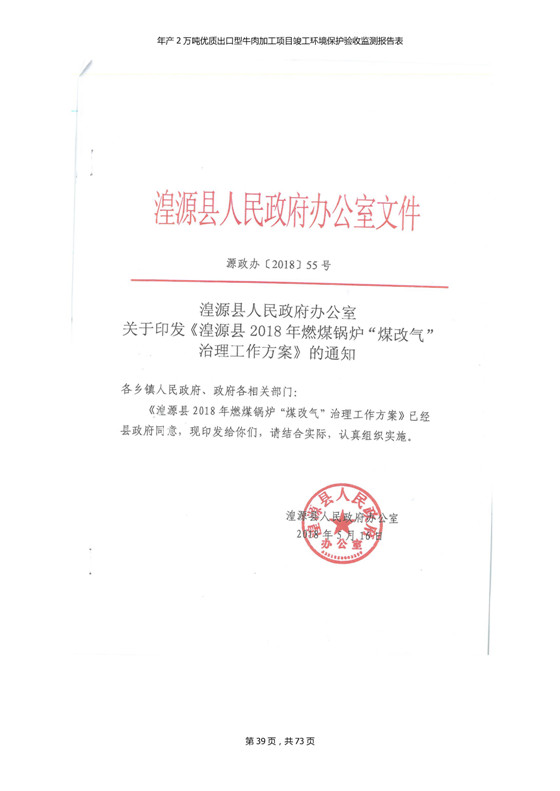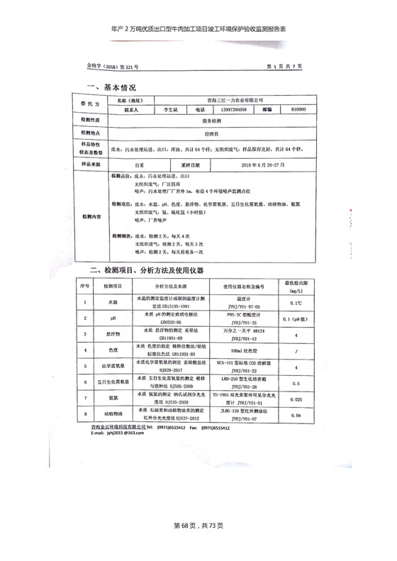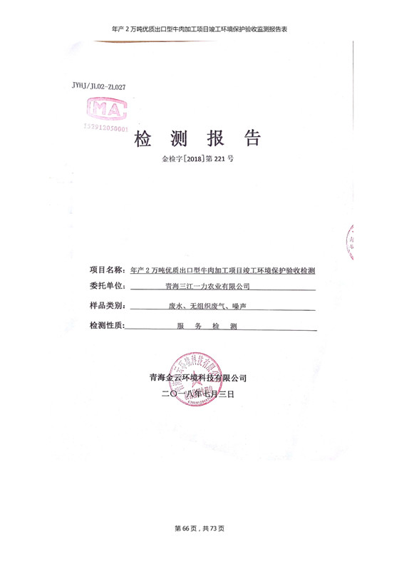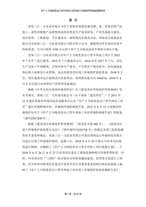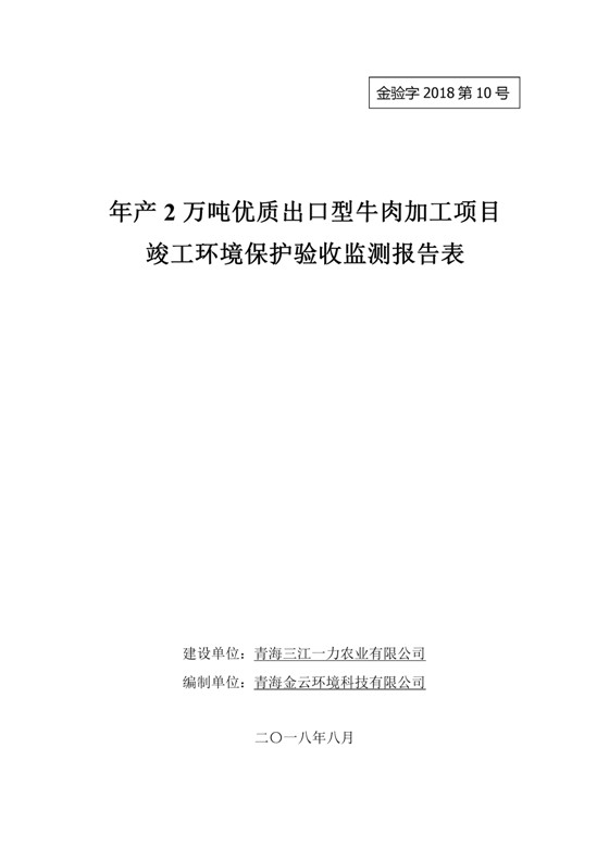 2018年7月11日,青海三江一力農(nóng)業(yè)有限公司組織召開年產(chǎn)2萬(wàn)噸優(yōu)質(zhì)出口型牛肉加工項(xiàng)目竣工環(huán)境保護(hù)驗(yàn)收會(huì)。