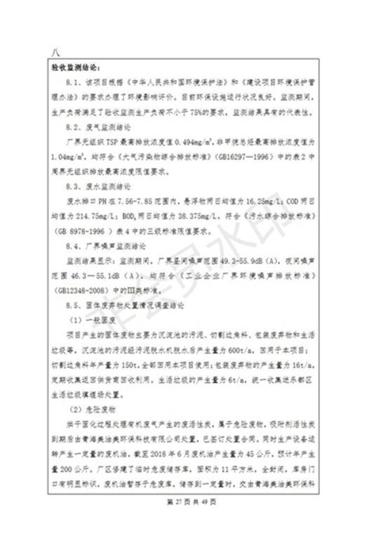 根據(jù)中華人民共和國國務(wù)院令第253號《建設(shè)項(xiàng)目環(huán)境保護(hù)管理?xiàng)l例》(中華人民共和國國務(wù)院令第682號《國務(wù)院關(guān)于修改〈建設(shè)項(xiàng)目環(huán)境保護(hù)管理?xiàng)l例〉的決定》和《建設(shè)項(xiàng)目竣工環(huán)境保護(hù)驗(yàn)收暫行辦法》,嚴(yán)格依照有關(guān)法律法規(guī),建設(shè)項(xiàng)目環(huán)境保護(hù)設(shè)施驗(yàn)收技術(shù)規(guī)范,本項(xiàng)目環(huán)評報(bào)告表和環(huán)保審批部門審批意見以及企業(yè)自行驗(yàn)收相關(guān)要求等對本項(xiàng)目進(jìn)行驗(yàn)收,本項(xiàng)目符合環(huán)保驗(yàn)收條件,可以通過環(huán)保驗(yàn)收。 海東市樂都區(qū)同泰科技有限公司竣工環(huán)境保護(hù)驗(yàn)收監(jiān)測報(bào)告公示