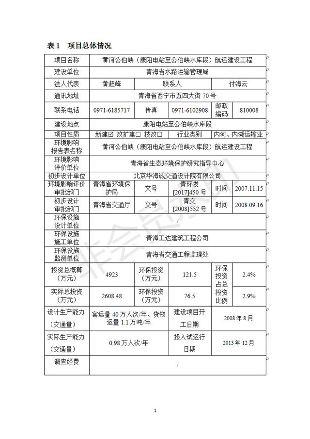 黃河公伯峽(康楊電站至公伯峽水庫(kù)段)航運(yùn)建設(shè)工程竣工環(huán)境保護(hù)驗(yàn)收調(diào)查報(bào)告表公示發(fā)布日期:(2018-11-16) 點(diǎn)擊次數(shù):2530 |