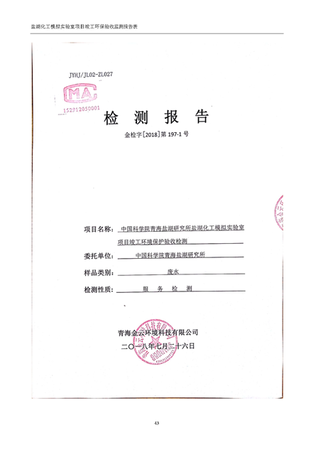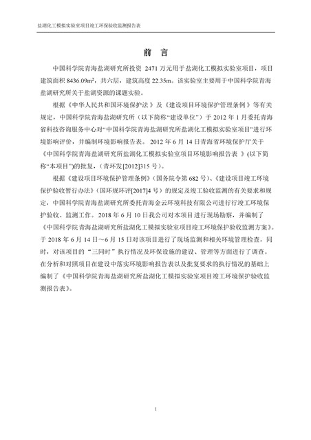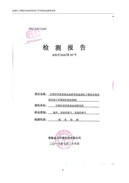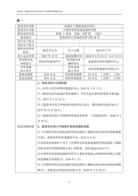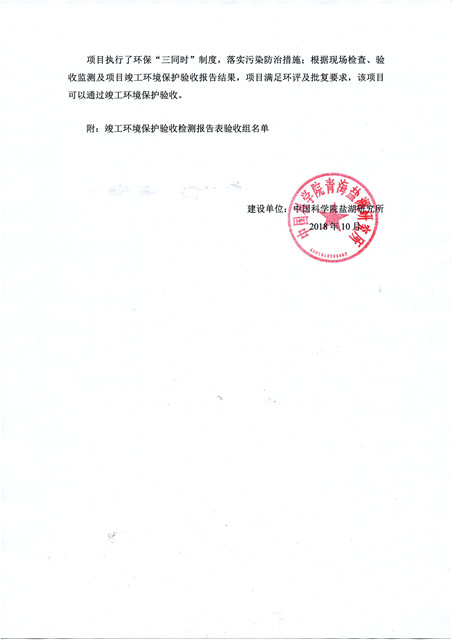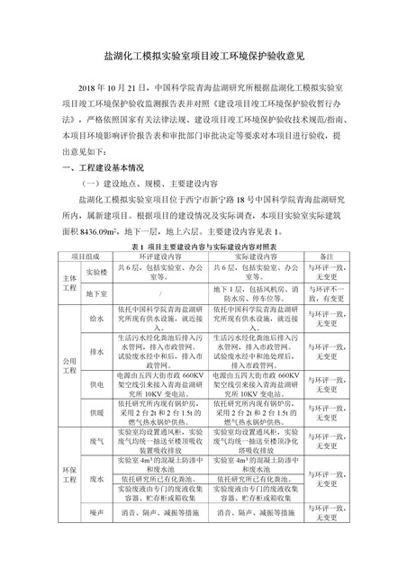 中國科學(xué)院青海鹽湖研究所鹽湖化工模擬實(shí)驗(yàn)室項目竣工環(huán)境保護(hù)驗(yàn)收監(jiān)測報告表公示發(fā)布日期:(2018-11-23) 點(diǎn)擊次數(shù):2254 |