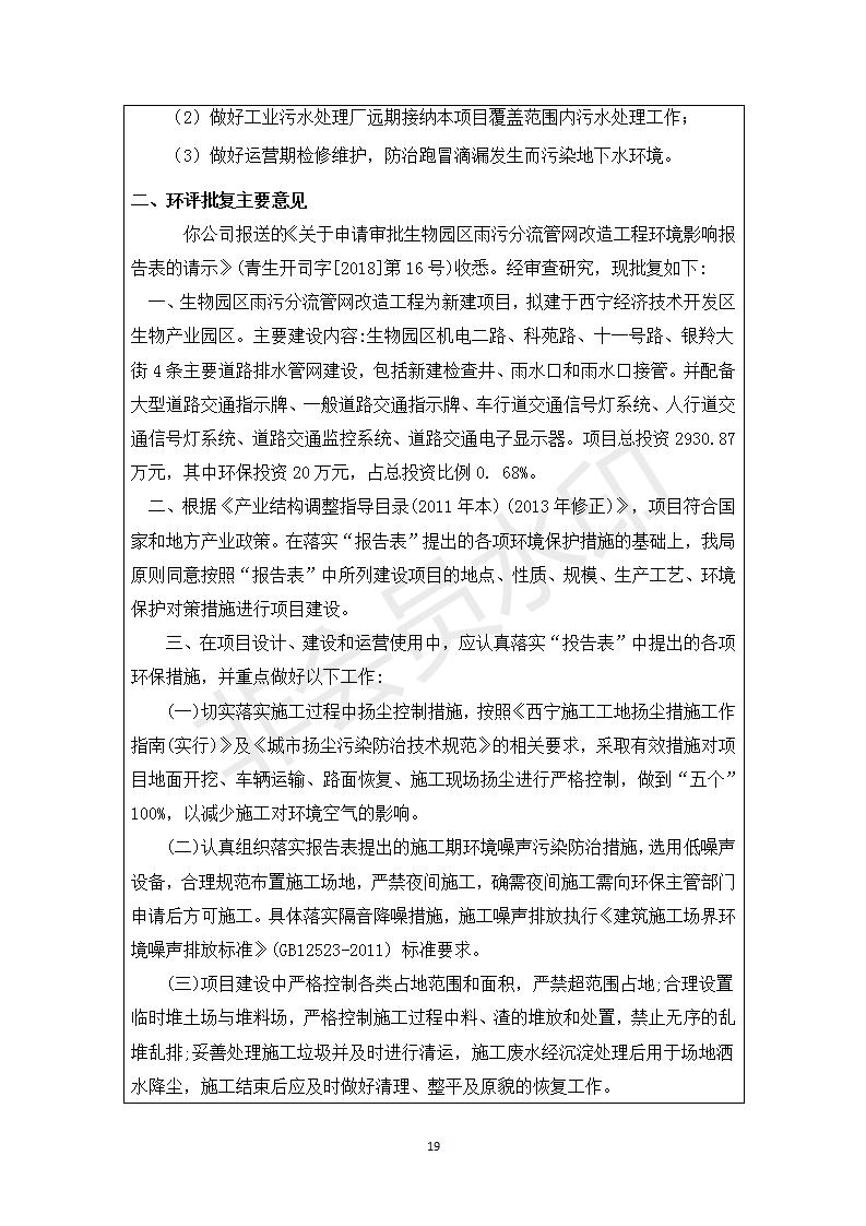 生物園區(qū)雨污分流管網(wǎng)改造工程竣工環(huán)境保護(hù)驗(yàn)收調(diào)查表 公示發(fā)布日期:(2018-12-21) 點(diǎn)擊次數(shù):2830 |