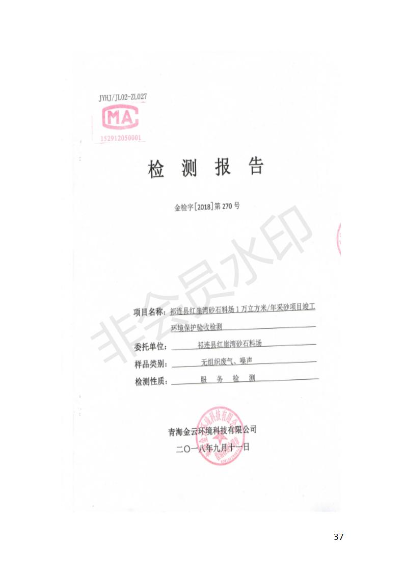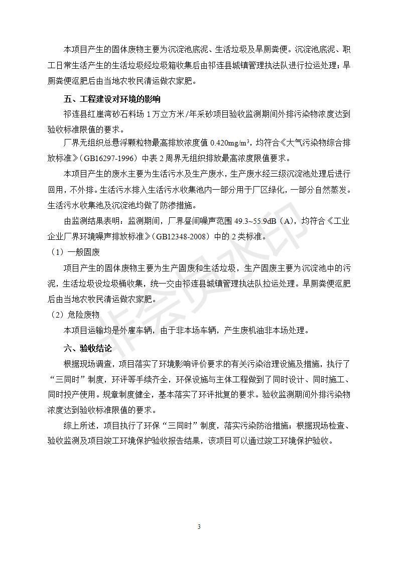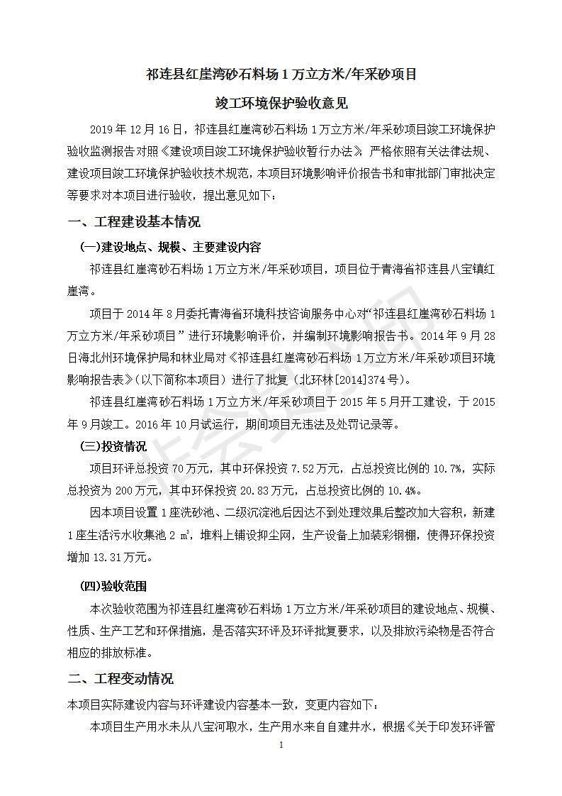 祁連縣紅崖灣砂石料場1萬立方米/年采砂項(xiàng)目竣工環(huán)境保護(hù)驗(yàn)收監(jiān)測(cè)報(bào)告表公示