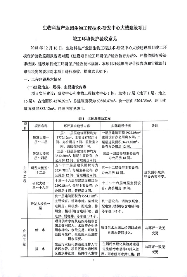 生物科技產(chǎn)業(yè)園生物工程技術(shù)-研發(fā)中心大樓建設(shè)項目竣工環(huán)境保護驗收監(jiān)測報告表公示