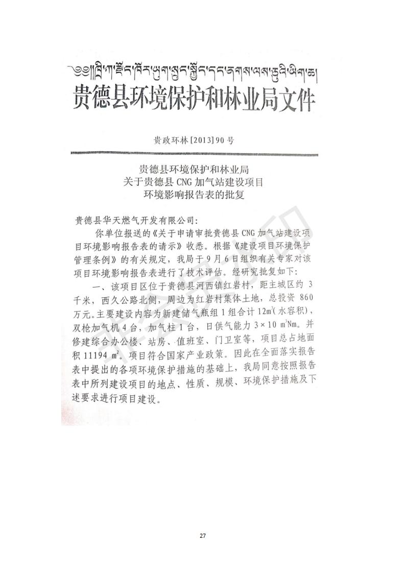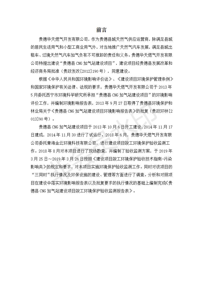 根據中華人民共和國務院令第682號《國務院關于修改〈建設項目環(huán)境保護管理條例〉的決定》和《建設項目竣工環(huán)境保護驗收暫行辦法》(國務院令682號),青藏高原特色生物資源綠色開發(fā)工程研究中心建設項目竣工環(huán)境保護驗收內容(包括竣工環(huán)境保護驗收調查報告和驗收意見)公示如下: 一、項目名稱:貴德縣CNG加氣站建設項目 二、地點:貴德縣河西鎮(zhèn)紅巖村 三、建設單位:貴德華天燃氣開發(fā)有限公司 四、建設內容:日供氣量為1.5×104Nm的加氣站 五、公示時間:二〇一九年五月二十九日至二〇一九年六月二十五日 六、聯(lián)系人:張工 公示期間,對上述公示內容如有異議,請以書面形式反饋,個人須署真實姓名,單位須加蓋公章。