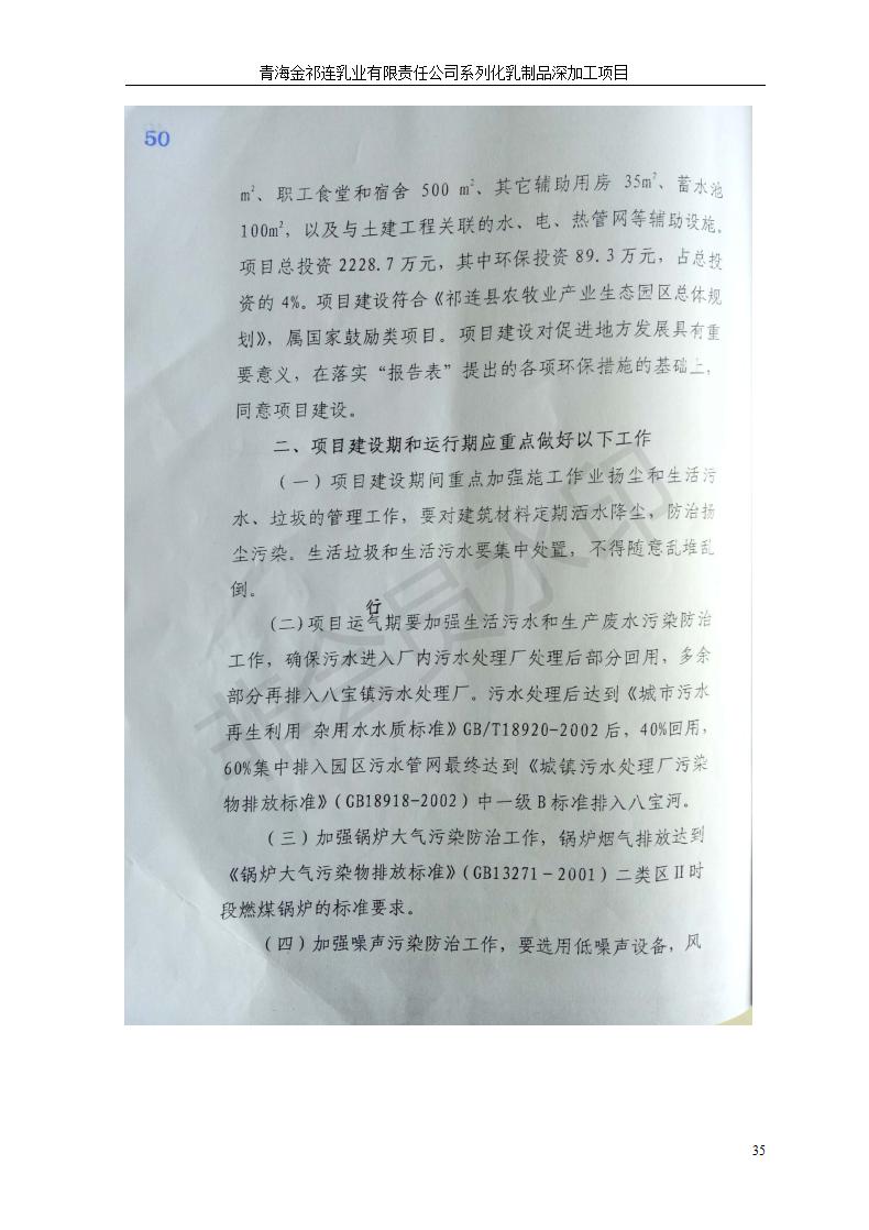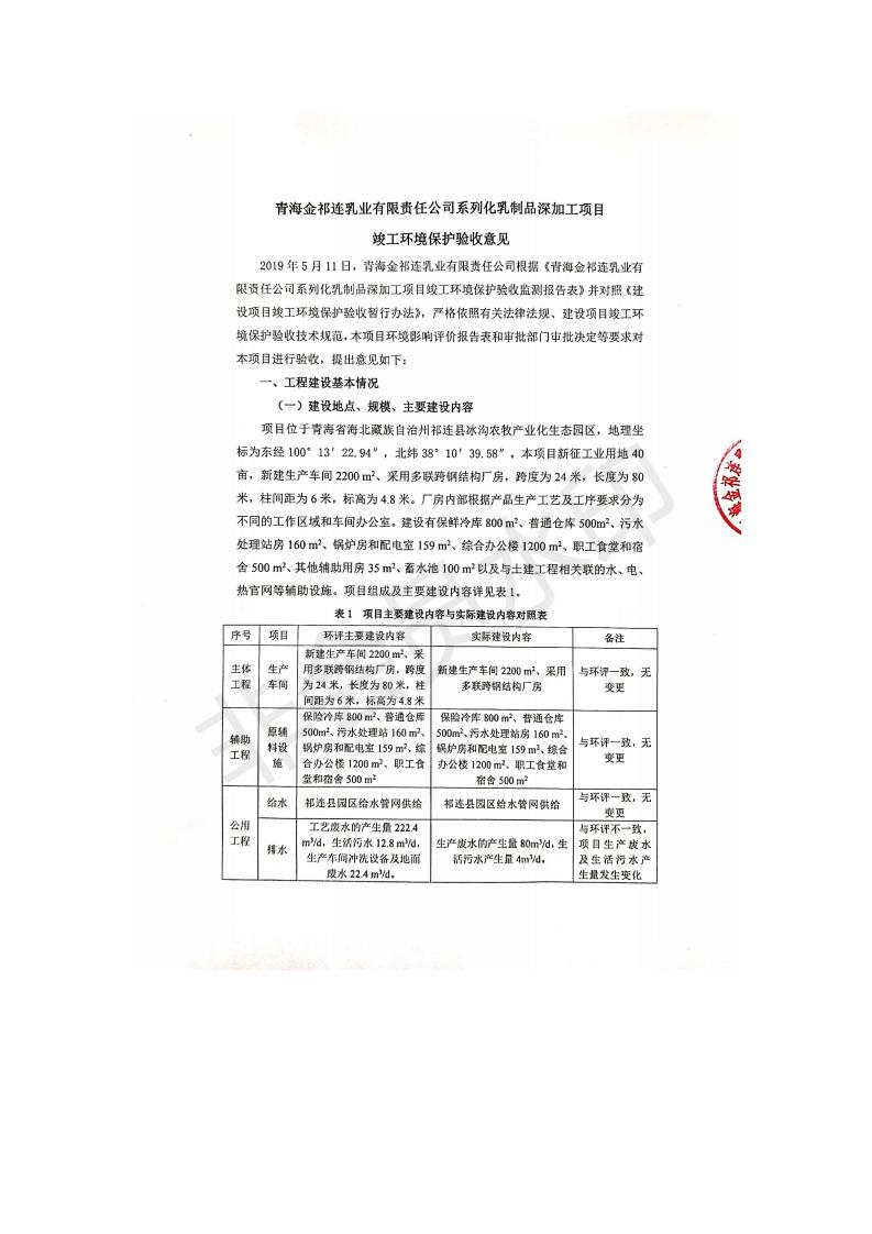 根據(jù)中華人民共和國國務(wù)院令第682號(hào)《國務(wù)院關(guān)于修改〈建設(shè)項(xiàng)目環(huán)境保護(hù)管理?xiàng)l例〉的決定》和《建設(shè)項(xiàng)目竣工環(huán)境保護(hù)驗(yàn)收暫行辦法》(國務(wù)院令682號(hào)),青海金祁連乳業(yè)有限責(zé)任公司系列化乳制品深加工項(xiàng)目(包括竣工環(huán)境保護(hù)驗(yàn)收監(jiān)測(cè)報(bào)告表和驗(yàn)收意見)公示如下。 一、項(xiàng)目名稱:青海金祁連乳業(yè)有限責(zé)任公司系列化乳制品深加工項(xiàng)目 二、地點(diǎn):海北藏族自治州祁連縣冰溝農(nóng)牧產(chǎn)業(yè)化生態(tài)園區(qū) 三、建設(shè)單位:青海金祁連乳業(yè)有限責(zé)任公司 四、建設(shè)內(nèi)容:本項(xiàng)目新征工業(yè)用地40畝,新建生產(chǎn)車間2200 m2、采用多聯(lián)跨鋼結(jié)構(gòu)廠房,跨度為24米,長(zhǎng)度為80米,柱間距為6米,標(biāo)高為4.8米。廠房?jī)?nèi)部根據(jù)產(chǎn)品生產(chǎn)工藝及工序要求分為不同的工作區(qū)域和車間辦公室。建設(shè)有保鮮冷庫800 m2、普通倉庫500m2、污水處理站房160 m2、鍋爐房和配電室159 m2、綜合辦公樓1200 m2、職工食堂和宿舍500 m2、其他輔助用房35 m2、蓄水池100 m2以及與土建工程相關(guān)聯(lián)的水、電、熱官網(wǎng)等輔助設(shè)施。 五、聯(lián)系人:張工 六、聯(lián)系電 話:0971-6515411 七、公示時(shí)間:二〇一九年七月十日至二〇一九年八月六日 公示期間,對(duì)上述公示內(nèi)容如有異議,請(qǐng)以書面形式反饋,個(gè)人須署真實(shí)姓名,單位須加蓋公章。