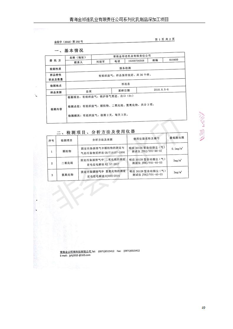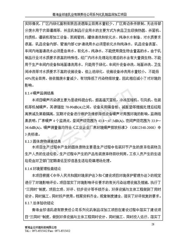 青海金祁連乳業(yè)有限責(zé)任公司系列化乳制品深加工項(xiàng)目竣工環(huán)境保護(hù)驗(yàn)收監(jiān)測(cè)報(bào)告表公示發(fā)布日期:(2019-7-10) 點(diǎn)擊次數(shù):2297 |