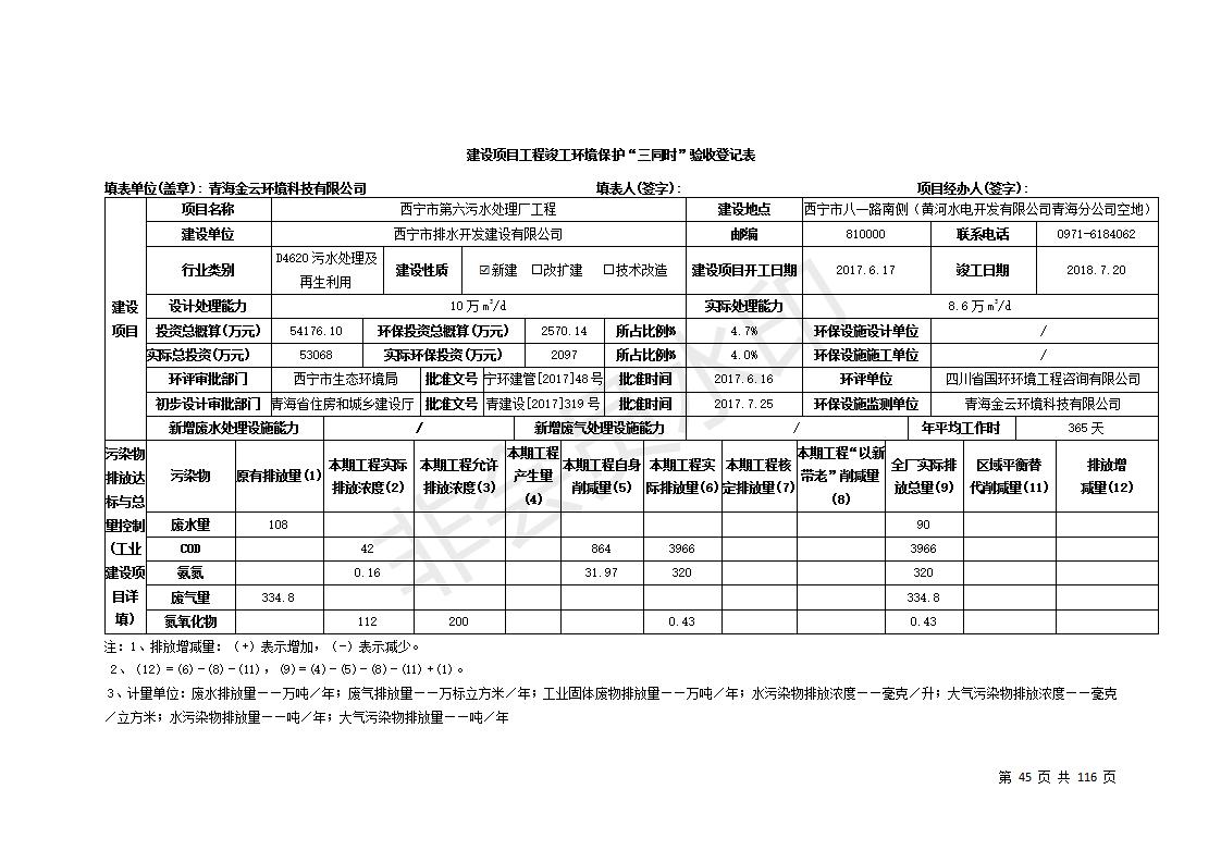 根據(jù)中華人民共和國國務(wù)院令第682號《國務(wù)院關(guān)于修改〈建設(shè)項(xiàng)目環(huán)境保護(hù)管理?xiàng)l例〉的決定》和《建設(shè)項(xiàng)目竣工環(huán)境保護(hù)驗(yàn)收暫行辦法》(國務(wù)院令682號),西寧市第六污水處理廠工程(包括竣工環(huán)境保護(hù)驗(yàn)收監(jiān)測報(bào)告和驗(yàn)收意見)公示如下。 一、項(xiàng)目名稱:西寧市第六污水處理廠工程 二、地點(diǎn):西寧市第六污水處理廠工程建于西寧市八一路南側(cè)(黃河水電開發(fā)有限公司青海分公司空地) 三、建設(shè)單位:西寧市排水開發(fā)建設(shè)有限公司 四、建設(shè)內(nèi)容:處理生活污水規(guī)模為10萬m3/d污水處理廠、輔助設(shè)施、環(huán)保設(shè)施等。 五、聯(lián)系人:張工 六、聯(lián)系電話:0971-6515411 七、公示時(shí)間:二〇一九年七月十一日至二〇一九年八月七日 公示期間,對上述公示內(nèi)容如有異議,請以書面形式反饋,個(gè)人須署真實(shí)姓名,單位須加蓋公章。