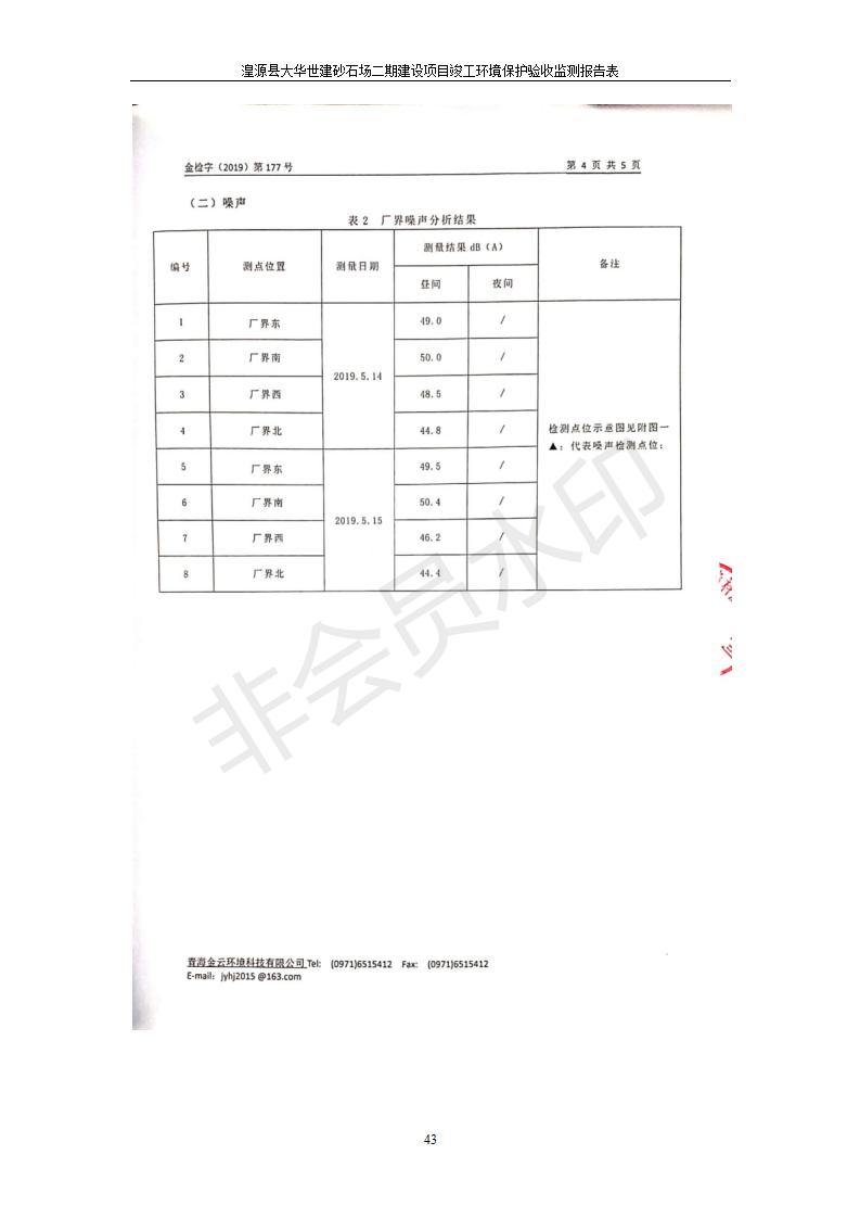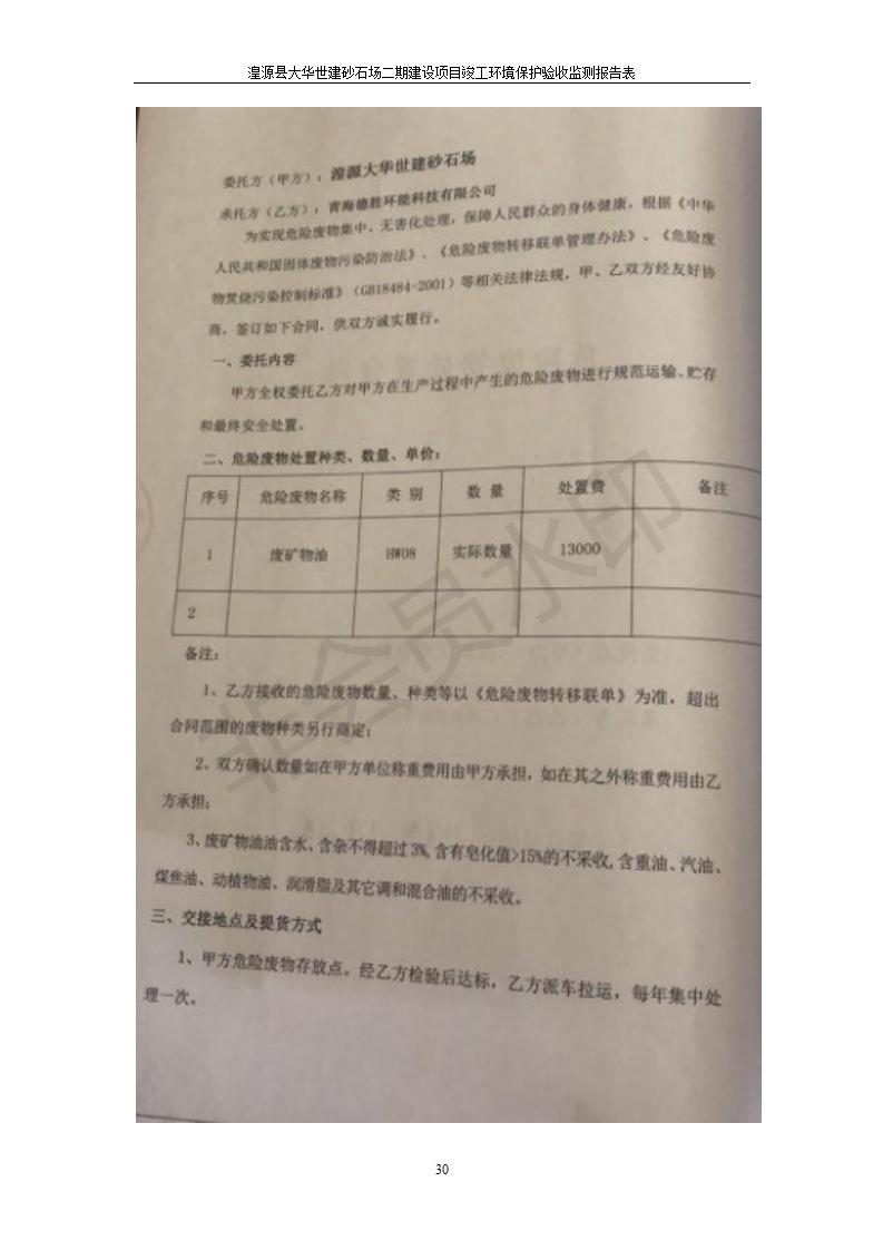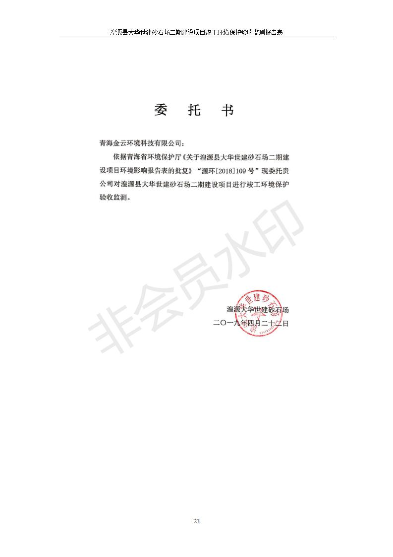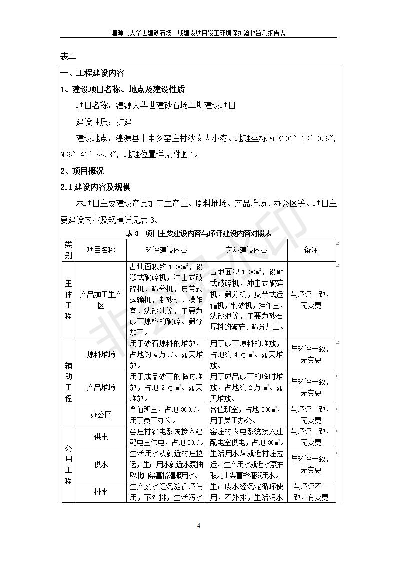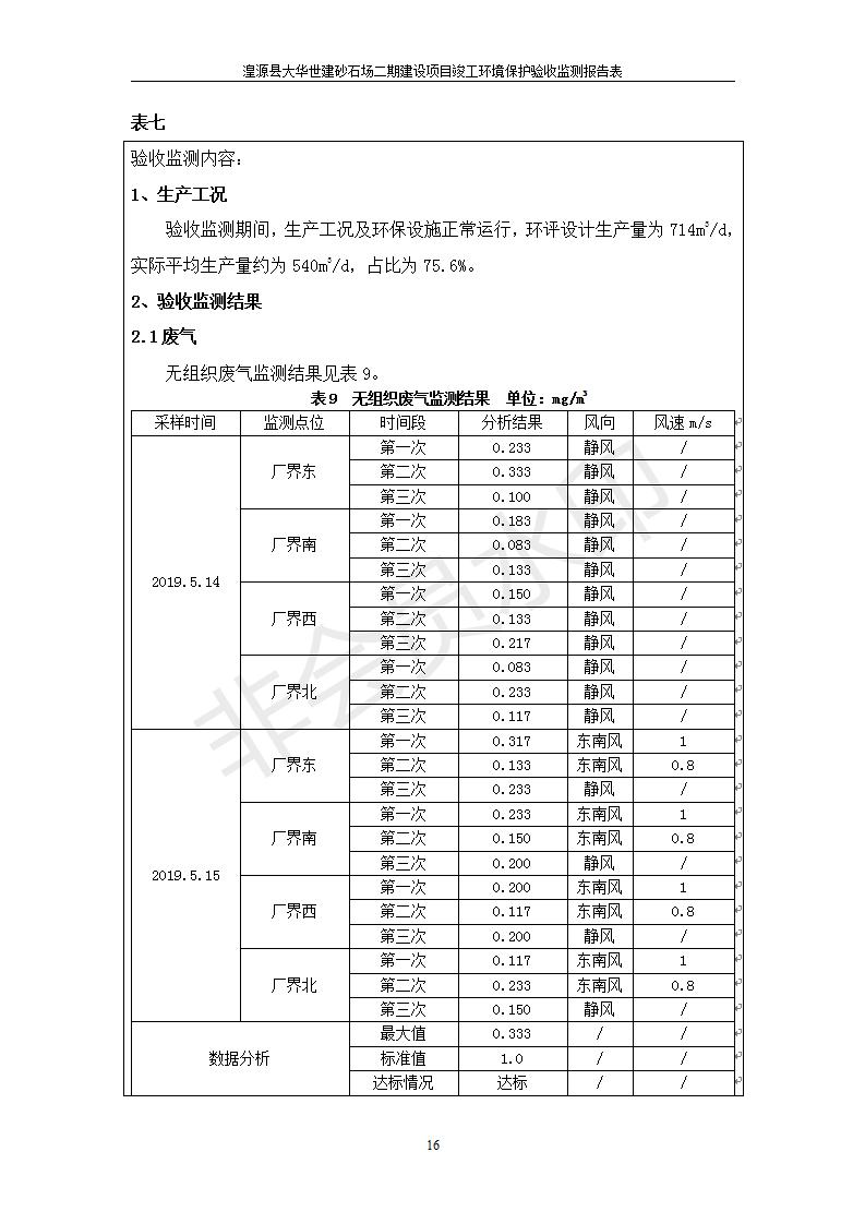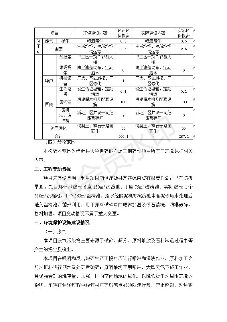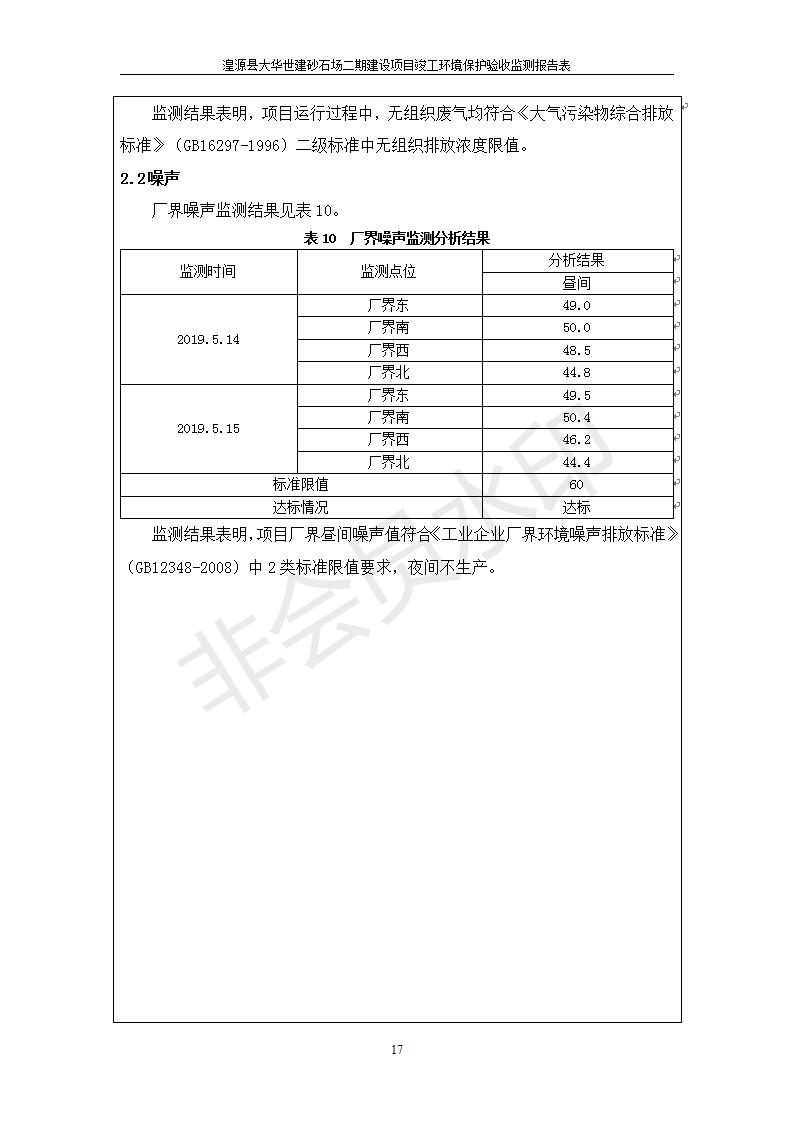 根據(jù)中華人民共和國(guó)國(guó)務(wù)院令第682號(hào)《國(guó)務(wù)院關(guān)于修改〈建設(shè)項(xiàng)目環(huán)境保護(hù)管理?xiàng)l例〉的決定》和《建設(shè)項(xiàng)目竣工環(huán)境保護(hù)驗(yàn)收暫行辦法》(國(guó)務(wù)院令682號(hào)),湟源大華世建砂石場(chǎng)湟源縣大華世建砂石場(chǎng)二期建設(shè)項(xiàng)目(包括竣工環(huán)境保護(hù)驗(yàn)收監(jiān)測(cè)報(bào)告表和驗(yàn)收意見)公示如下。 一、項(xiàng)目名稱:湟源縣大華世建砂石場(chǎng)二期建設(shè)項(xiàng)目 二、地點(diǎn):湟源縣申中鄉(xiāng)窯莊村沙崗大小灣 三、建設(shè)單位:湟源大華世建砂石場(chǎng) 四、建設(shè)內(nèi)容:項(xiàng)目主要建設(shè)砂石料產(chǎn)品加工生產(chǎn)區(qū)、原料堆場(chǎng)、產(chǎn)品堆場(chǎng)、辦公區(qū)等。五、聯(lián)系人:張工 六、聯(lián)系電 話:0971-6515411 七、公示時(shí)間:二〇一九年七月二十五日至二〇一九年八月二十一日公示期間,對(duì)上述公示內(nèi)容如有異議,請(qǐng)以書面形式反饋,個(gè)人須署真實(shí)姓名,單位須加蓋公章。