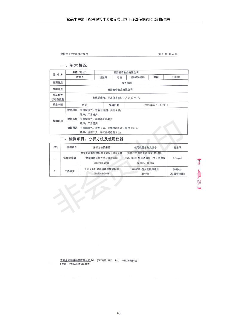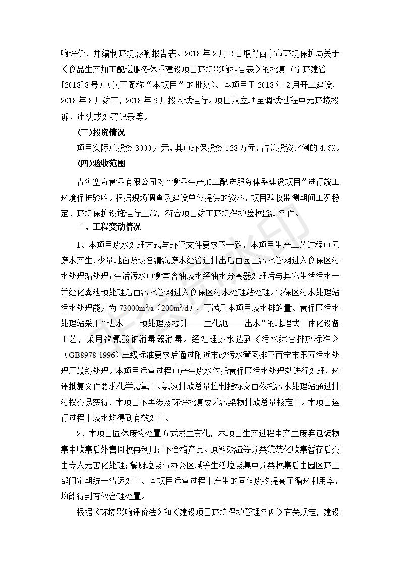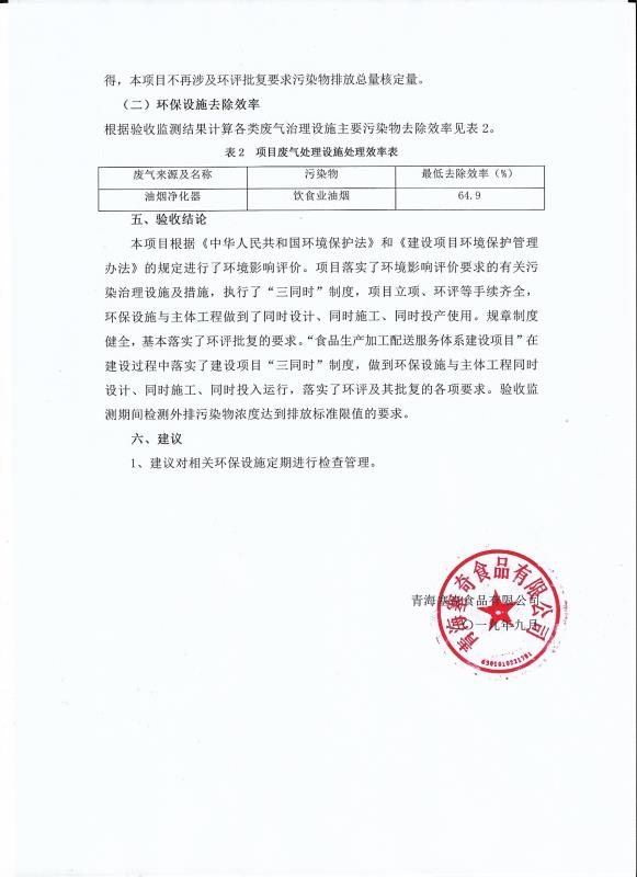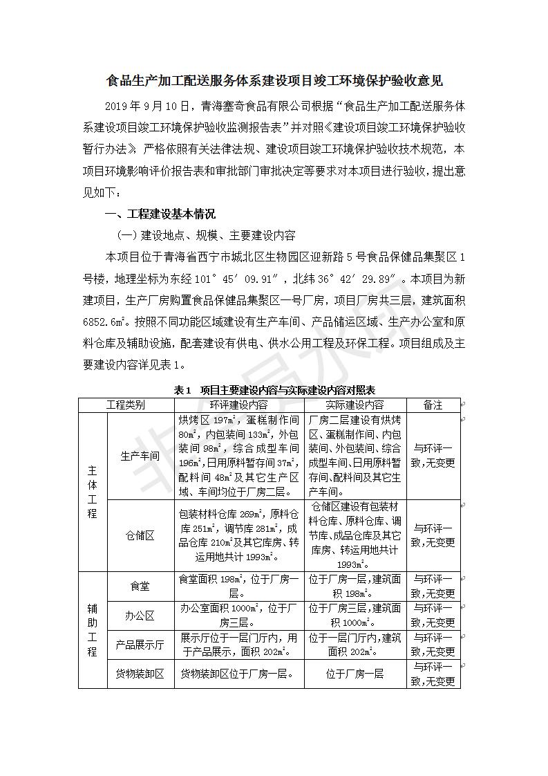 根據(jù)中華人民共和國國務(wù)院令第682號《國務(wù)院關(guān)于修改〈建設(shè)項目環(huán)境保護管理條例〉的決定》和《建設(shè)項目竣工環(huán)境保護驗收暫行辦法》(國務(wù)院令682號),食品生產(chǎn)加工配送服務(wù)體系建設(shè)項目(包括竣工環(huán)境保護驗收監(jiān)測報告表和驗收意見)公示如下。 一、項目名稱:食品生產(chǎn)加工配送服務(wù)體系建設(shè)項目 二、地點:西寧市城北區(qū)生物園區(qū)迎新路5號食品保健品集聚區(qū)1號樓 六、聯(lián)系電 話:0971-6515411 七、公示時間:二〇一九年九月二十日至二〇一九年十月二十二日 公示期間,對上述公示內(nèi)容如有異議,請以書面形式反饋,個人須署真實姓名,單位須加蓋公章。