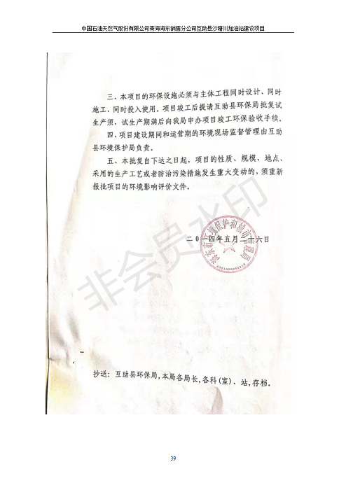 根據(jù)中華人民共和國(guó)國(guó)務(wù)院令第682號(hào)《國(guó)務(wù)院關(guān)于修改〈建設(shè)項(xiàng)目環(huán)境保護(hù)管理?xiàng)l例〉的決定》和《建設(shè)項(xiàng)目竣工環(huán)境保護(hù)驗(yàn)收暫行辦法》(國(guó)務(wù)院令682號(hào)),互助縣沙塘川加油站建設(shè)項(xiàng)目(包括竣工環(huán)境保護(hù)驗(yàn)收監(jiān)測(cè)報(bào)告表和驗(yàn)收意見(jiàn))公示如下。 一、項(xiàng)目名稱(chēng):互助縣沙塘川加油站建設(shè)項(xiàng)目 二、地點(diǎn):互助縣塘川鎮(zhèn)包家口村 六、聯(lián)系電話:0971-6515411 七、公示時(shí)間:二〇一九年九月二十七日至二〇一九年十月二十九日 公示期間,對(duì)上述公示內(nèi)容如有異議,請(qǐng)以書(shū)面形式反饋,個(gè)人須署真實(shí)姓名,單位須加蓋公章。
