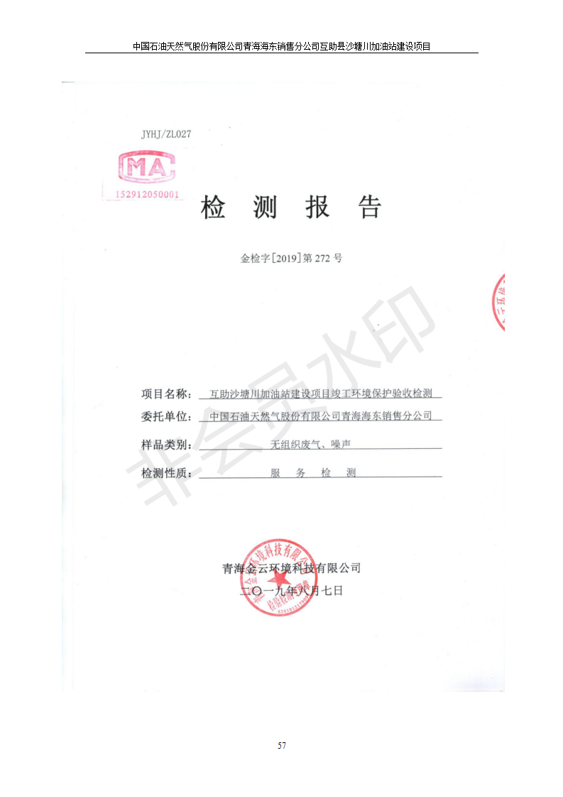互助縣沙塘川加油站建設(shè)項(xiàng)目竣工環(huán)境保護(hù)驗(yàn)收監(jiān)測(cè)報(bào)告表發(fā)布日期:(2019-9-27) 點(diǎn)擊次數(shù):2248 |