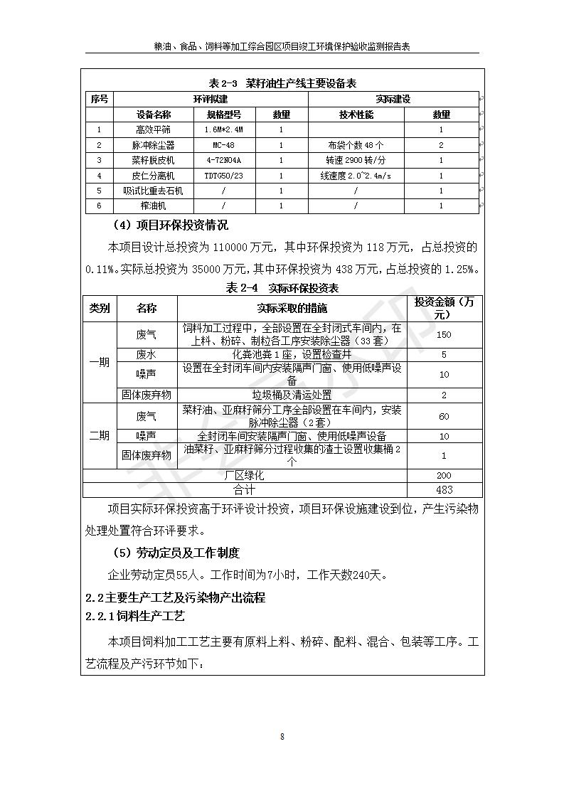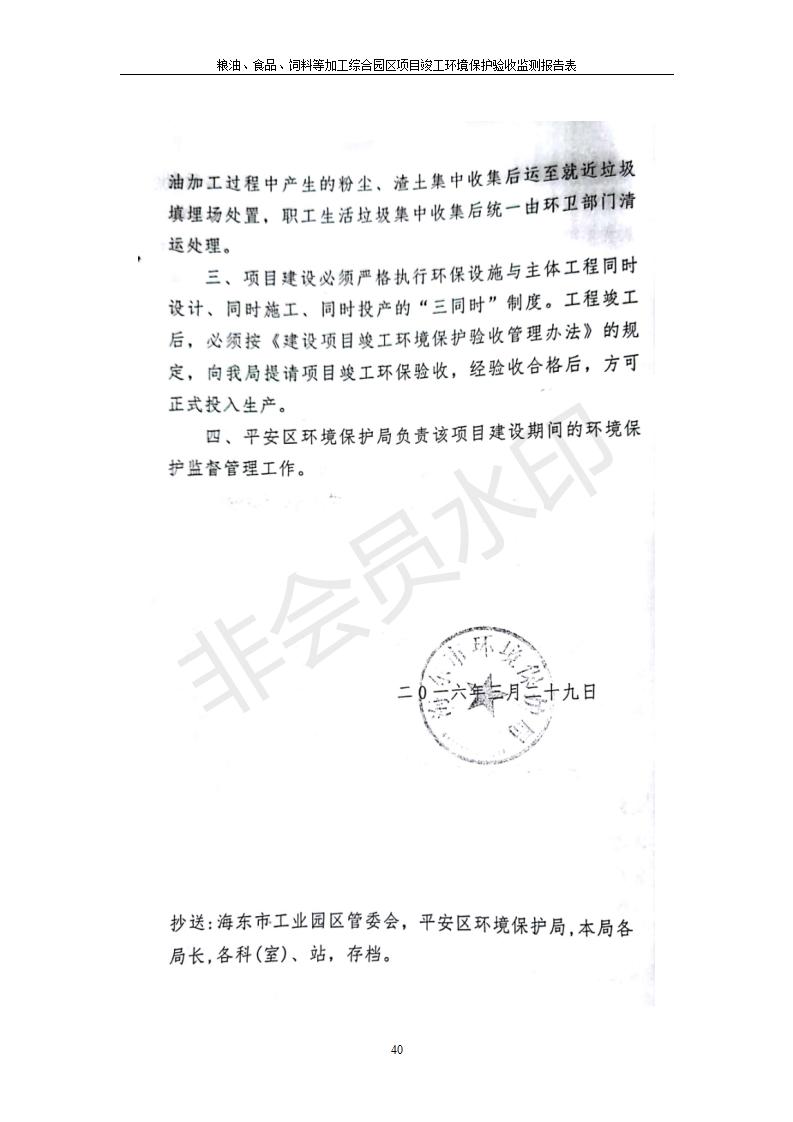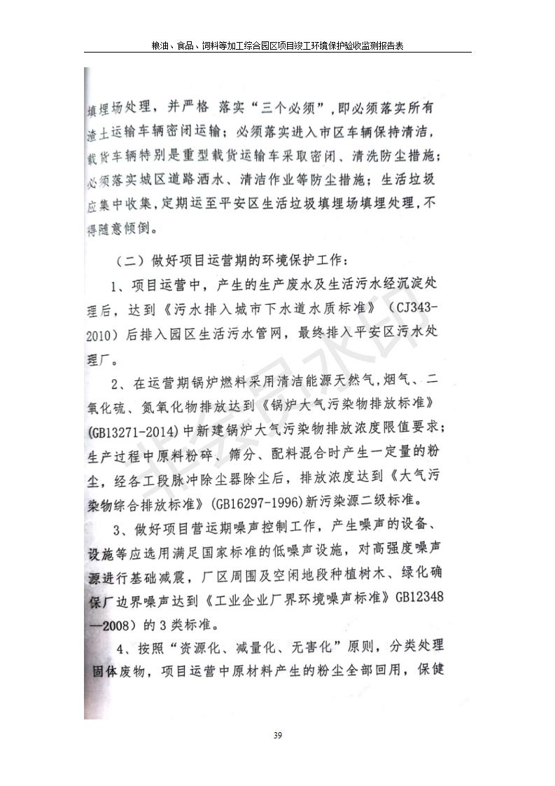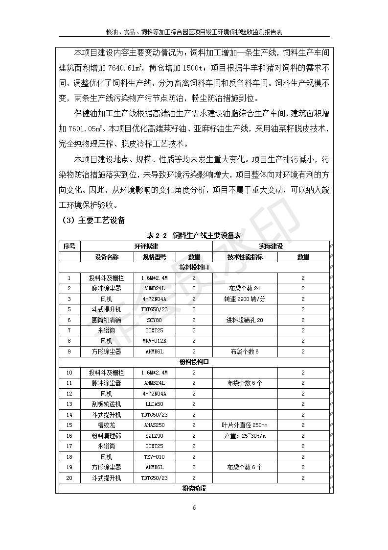根據(jù)中華人民共和國國務(wù)院令第682號《國務(wù)院關(guān)于修改〈建設(shè)項目環(huán)境保護管理條例〉的決定》和《建設(shè)項目竣工環(huán)境保護驗收暫行辦法》(國務(wù)院令682號),糧油、食品、飼料等加工綜合園區(qū)項目竣工環(huán)境保護驗收監(jiān)測報告表(包括竣工環(huán)境保護驗收監(jiān)測報告表和驗收意見)公示如下。 一、項目名稱:糧油、食品、飼料等加工綜合園區(qū)項目 二、地點:河湟新區(qū)(海東工業(yè)園區(qū)臨空綜合經(jīng)濟園) 六、聯(lián)系電話:0971-6515411 七、公示時間:二〇一九年十月九日至二〇一九年十一月五日 公示期間,對上述公示內(nèi)容如有異議,請以書面形式反饋,個人須署真實姓名,單位須加蓋公章。