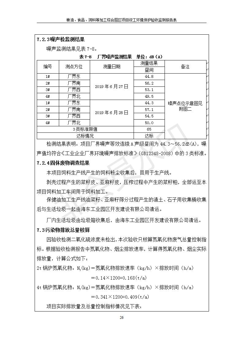 糧油、食品、飼料等加工綜合園區(qū)項目竣工環(huán)境保護驗收監(jiān)測報告表公示發(fā)布日期:(2019-10-9) 點擊次數(shù):2652 |