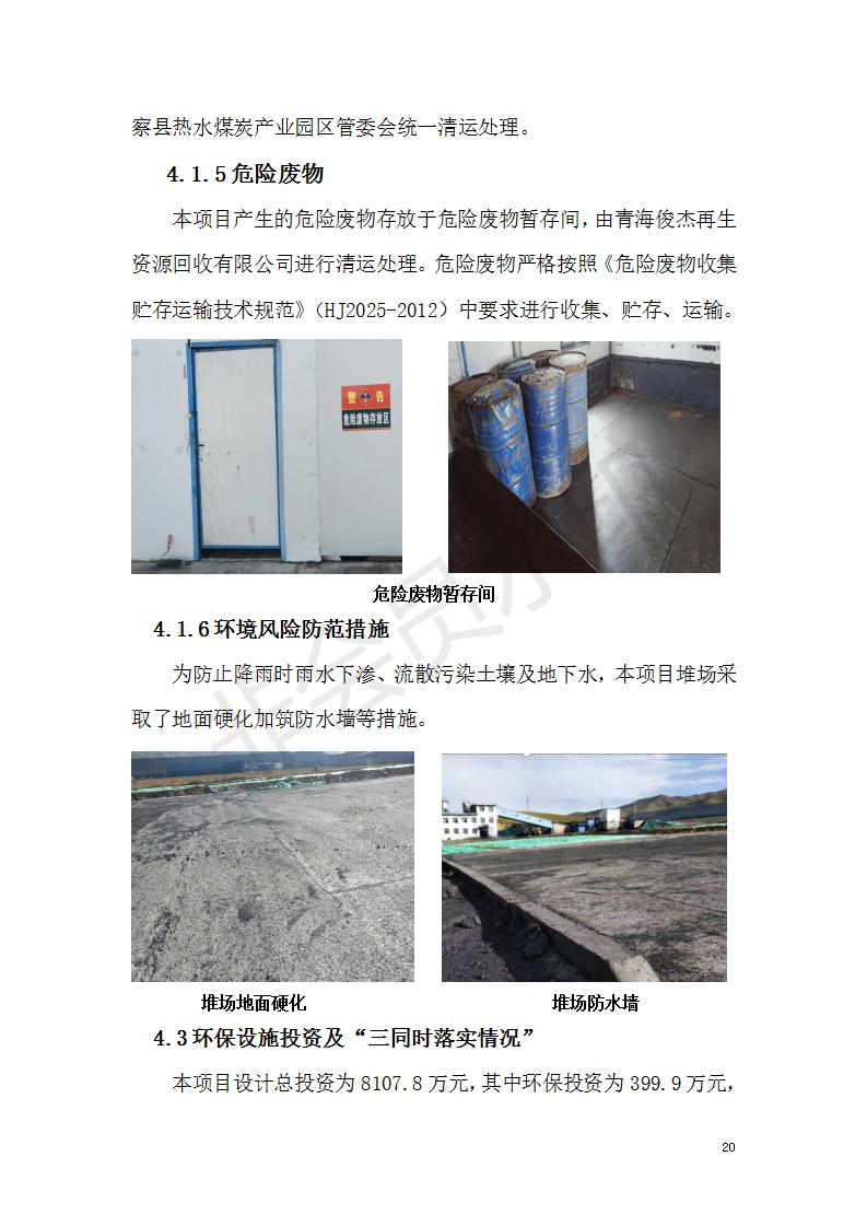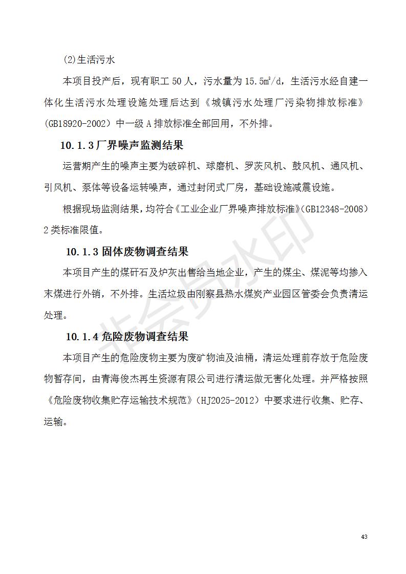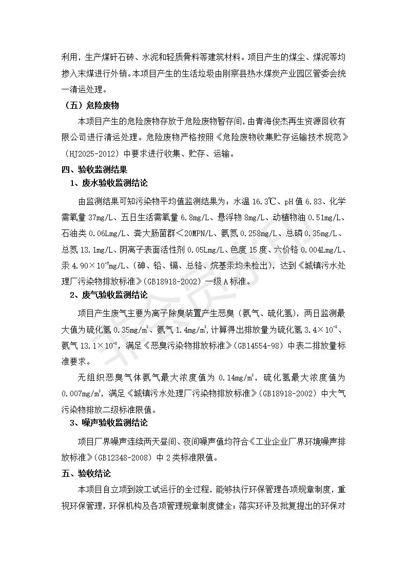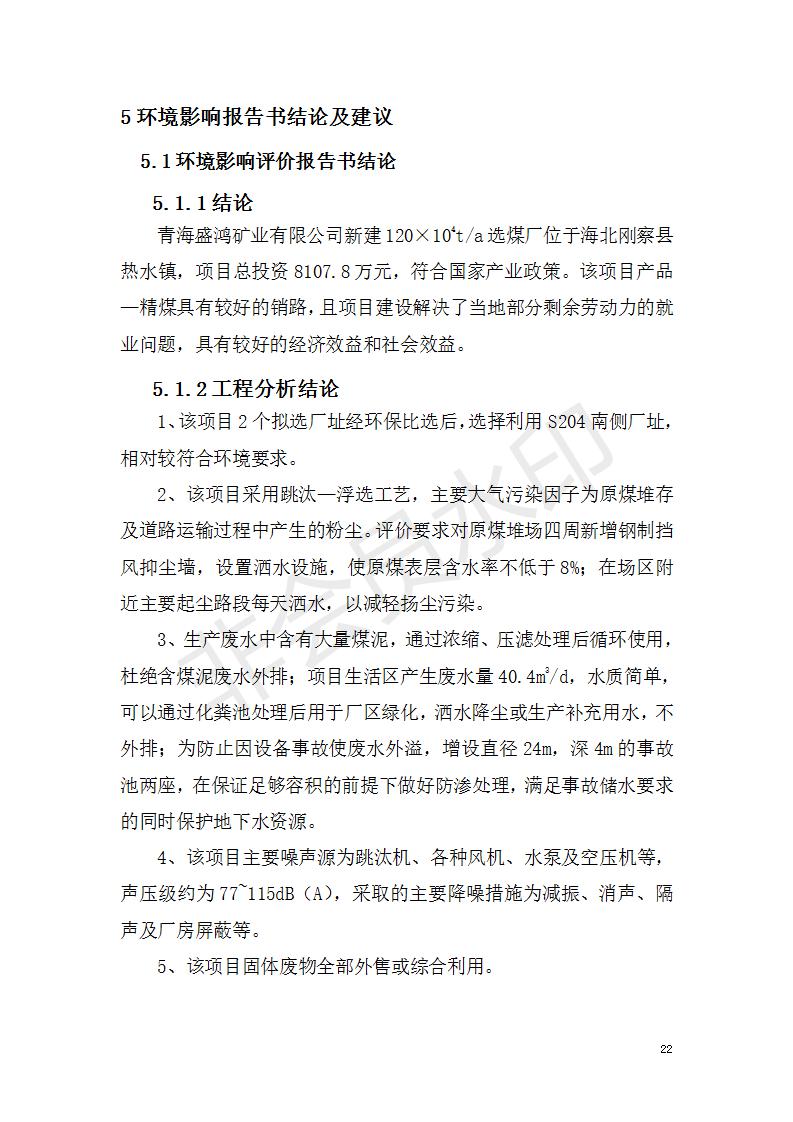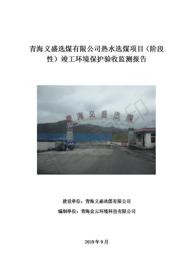 根據(jù)中華人民共和國國務(wù)院令第682號《國務(wù)院關(guān)于修改〈建設(shè)項(xiàng)目環(huán)境保護(hù)管理?xiàng)l例〉的決定》和《建設(shè)項(xiàng)目竣工環(huán)境保護(hù)驗(yàn)收暫行辦法》(國務(wù)院令682號),青海義盛選煤有限公司熱水選煤項(xiàng)目(階段性)竣工環(huán)境保護(hù)驗(yàn)收監(jiān)測報告(包括竣工環(huán)境保護(hù)驗(yàn)收監(jiān)測報告和驗(yàn)收意見)公示如下。 一、項(xiàng)目名稱:青海義盛選煤有限公司熱水選煤項(xiàng)目(階段性) 二、地點(diǎn):剛察縣熱水鎮(zhèn) 此外還包括公用工程系統(tǒng)、消防系統(tǒng)及輔助生產(chǎn)設(shè)施等。 五、聯(lián)系人:張工六、聯(lián)系電話:0971-6515411 七、公示時間:二〇一九年十一月十二日至二〇一九年十二月九日