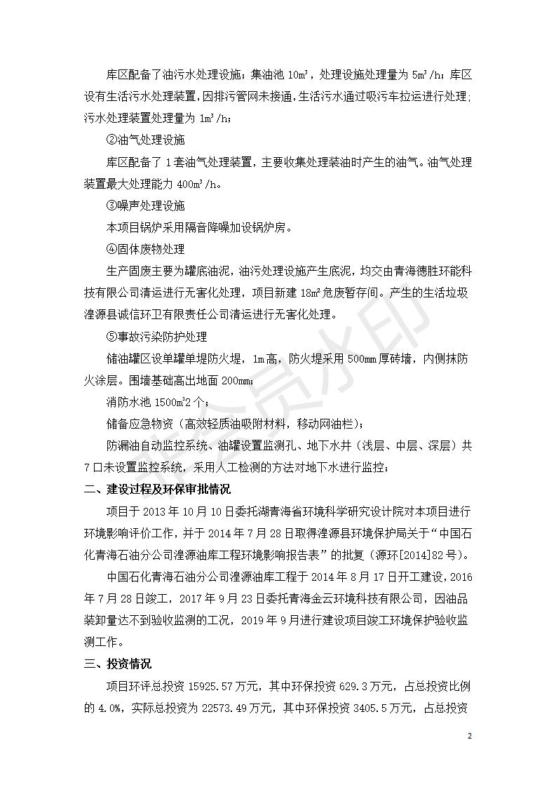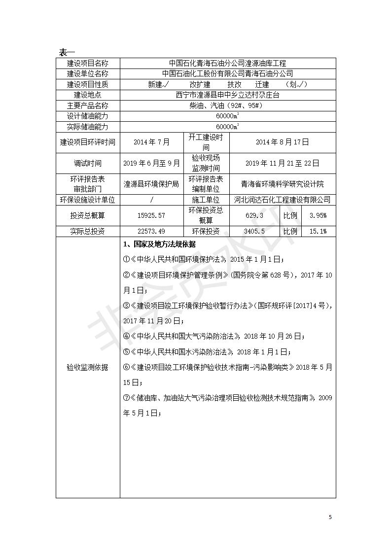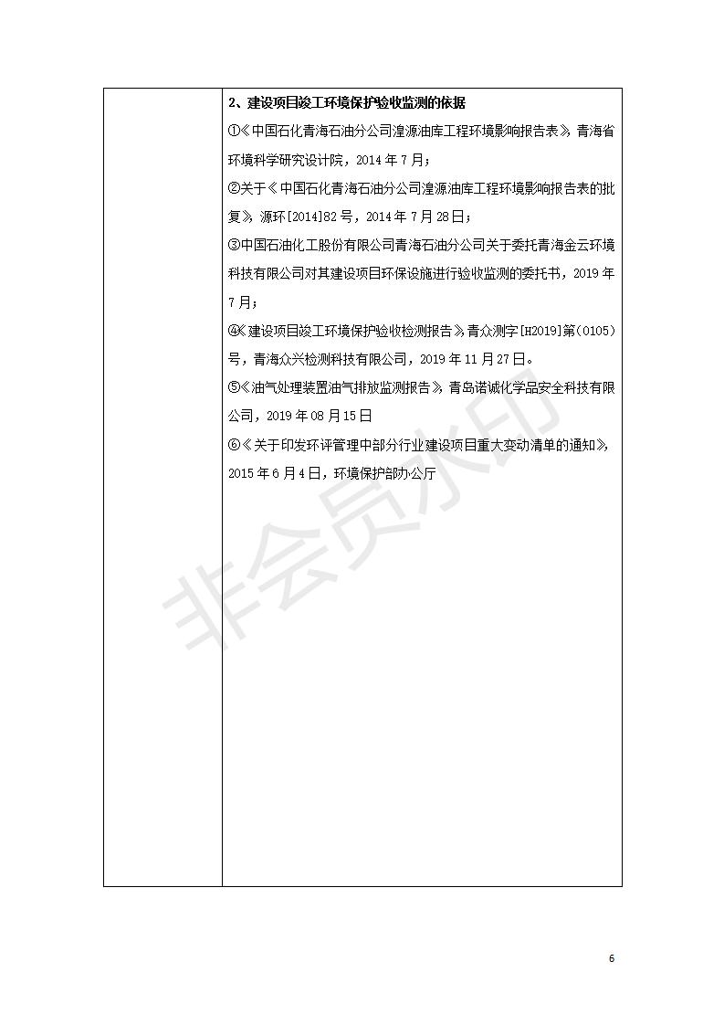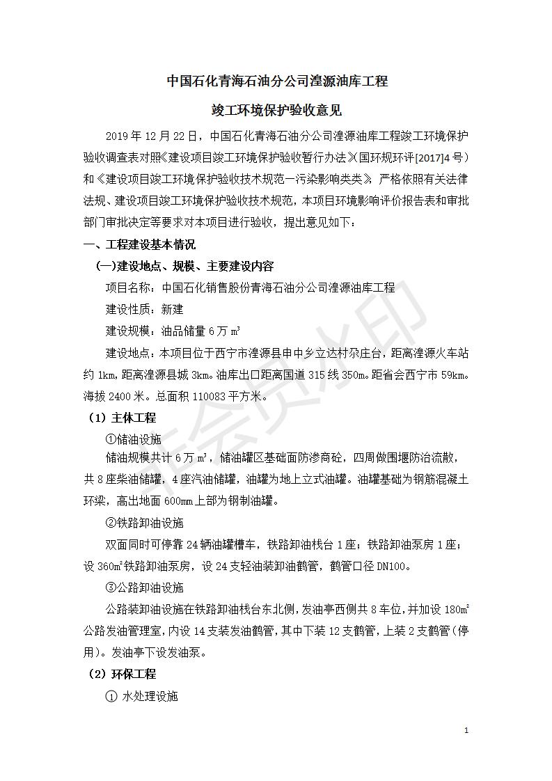 據(jù)中華人民共和國國務(wù)院令第682號《國務(wù)院關(guān)于修改〈建設(shè)項(xiàng)目環(huán)境保護(hù)管理?xiàng)l例〉的決定》和《建設(shè)項(xiàng)目竣工環(huán)境保護(hù)驗(yàn)收暫行辦法》(國務(wù)院令682號),中國石化青海石油分公司湟源油庫工程建設(shè)項(xiàng)目(包括竣工環(huán)境保護(hù)驗(yàn)收監(jiān)測報告表和驗(yàn)收意見)公示如下。 一、項(xiàng)目名稱:中國石化青海石油分公司湟源油庫工程建設(shè)項(xiàng)目 二、地點(diǎn):西寧市湟源縣申中鄉(xiāng)立達(dá)村尕莊臺 三、建設(shè)單位:中國石化銷售股份有限公司青海石油分公司 四、建設(shè)內(nèi)容:油品儲量6萬m3、其他配套設(shè)施。五、聯(lián)系人:董恒棟 六、聯(lián)系電話:18697130811 七、公示時間:二〇二〇年三月十三日至二〇二〇年四月十日 公示期間,對上述公示內(nèi)容如有異議,請以書面形式反饋,個人須署真實(shí)姓名,單位須加蓋公章。